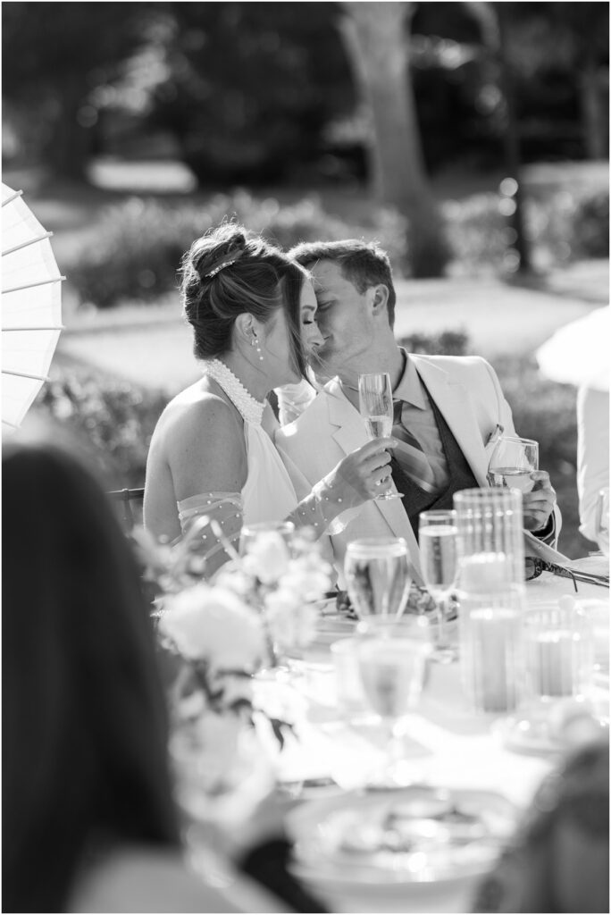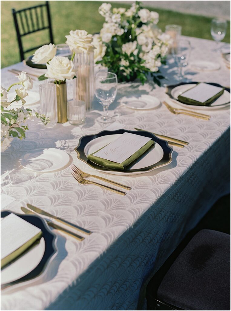 Crane Cottageās European-inspired architecture created a natural backdrop for their Italian-influenced aesthetic. The venueās historic charm, soft coastal light, and manicured gardens made it feel transportive ā romantic and timeless.